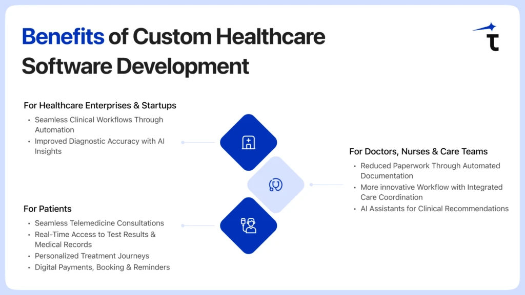 Healthcare software development improves productivity and reduces administrative load for medical teams.