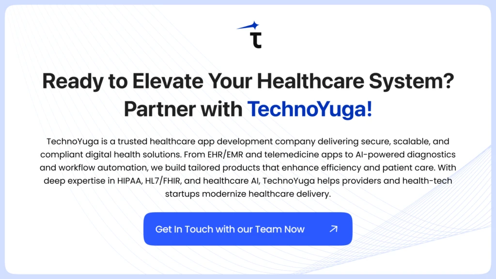 Looking to build a secure, scalable Telemedicine, EHR, or Patient Portal? Connect with TechnoYuga’s healthcare experts today.