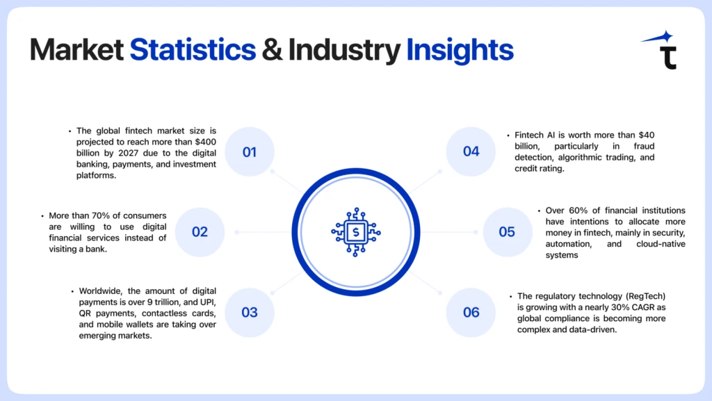 Fintech has become one of the most disruptive as well as fast-scaling sectors across the globe, and this has led to the adoption of fintech software development more. According to recent market research: