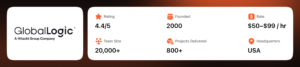 GlobalLogic focuses on digital product engineering, and AI is implemented in the modern software platform. The company helps businesses to create data-driven products through the integration of design, engineering, and AI. It is concerned with introducing intelligence into the customer-facing and operational systems in various industries.