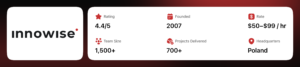 We also check the scope of service provided: strategic consulting and complete AI development, and the forms of cooperation: dedicated work teams or project implementation. The client portfolio and industry coverage is another significant criterion, which shows the versatility of the company.