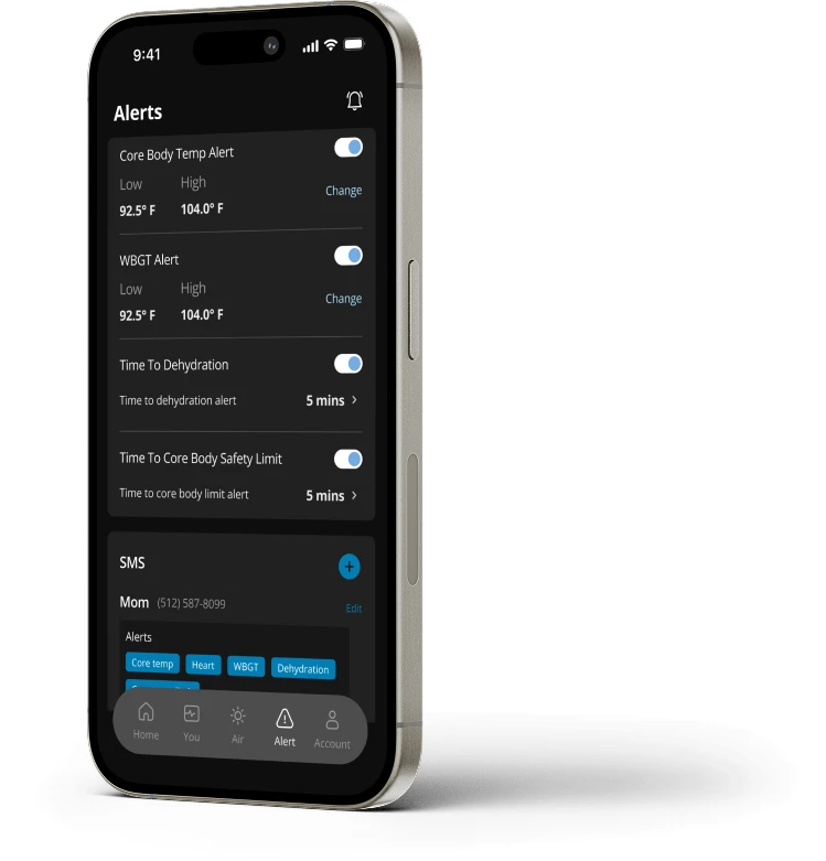 Sends instant alerts to athletes, coaches, and parents when thresholds are crossed, reducing risks of heat-related injuries.