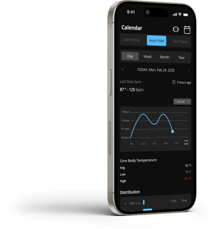 Reading that combines core and skin temperature into actionable measures of heat stress and training intensity.